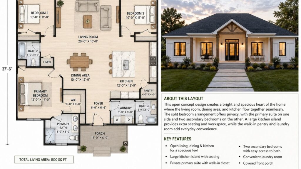 In this post, I share 1500 sq ft house plans that feels open, functional, and easy to live in, no matter your lifestyle.