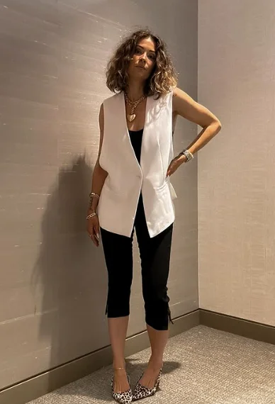 A long vest paired with capri pants creates a clean and structured outfit that stands out in a quiet, confident way.