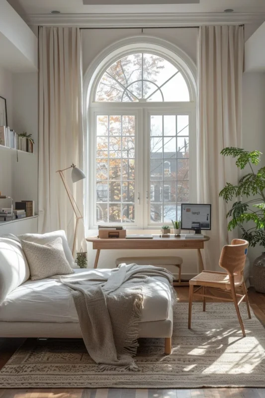 Pro Tip: Place a mirror across from the window to reflect natural light deeper into the room. This helps brighten both the workspace and sleeping area.