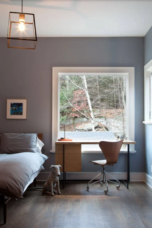 Keep furniture simple and well-spaced. A clean layout allows the room to support both work and rest with ease.