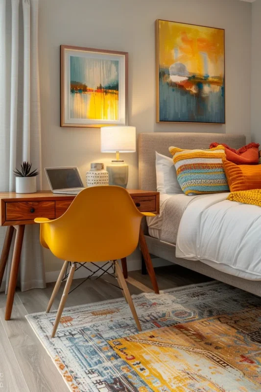 Pro Tip: Choose one statement piece, such as a mid-century desk or chair, and let it define the workspace while the rest of the room stays simple.