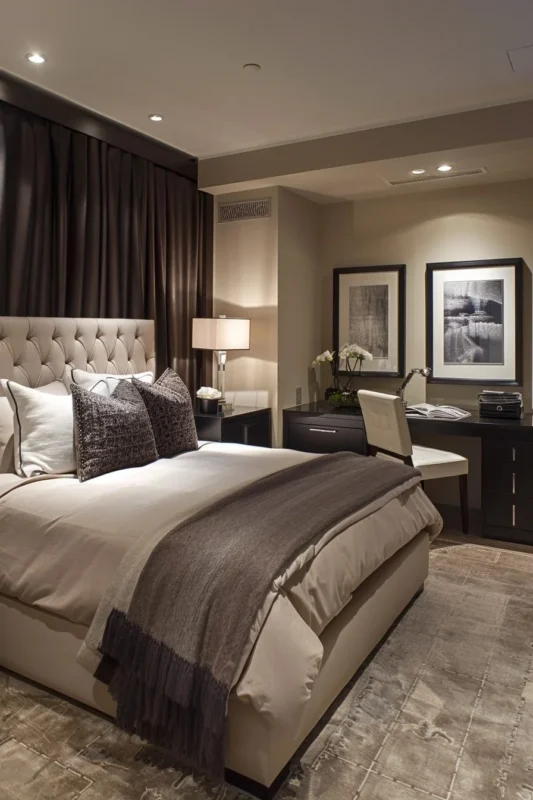 An urban elegance guest room office combo blends modern finishes with a polished layout. The space focuses on clean lines and subtle contrast.