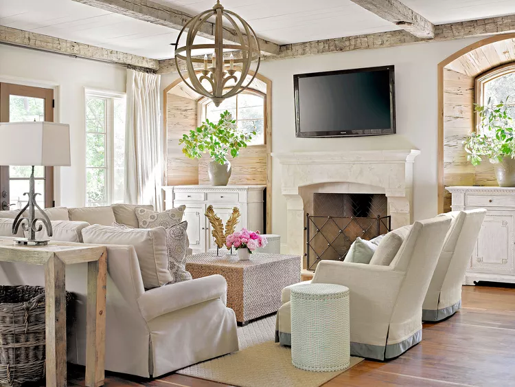 In older homes, beams often come with wear that tells a story. In newer spaces, reclaimed wood can create that same effect, giving the room a lived-in quality that doesn’t feel manufactured.